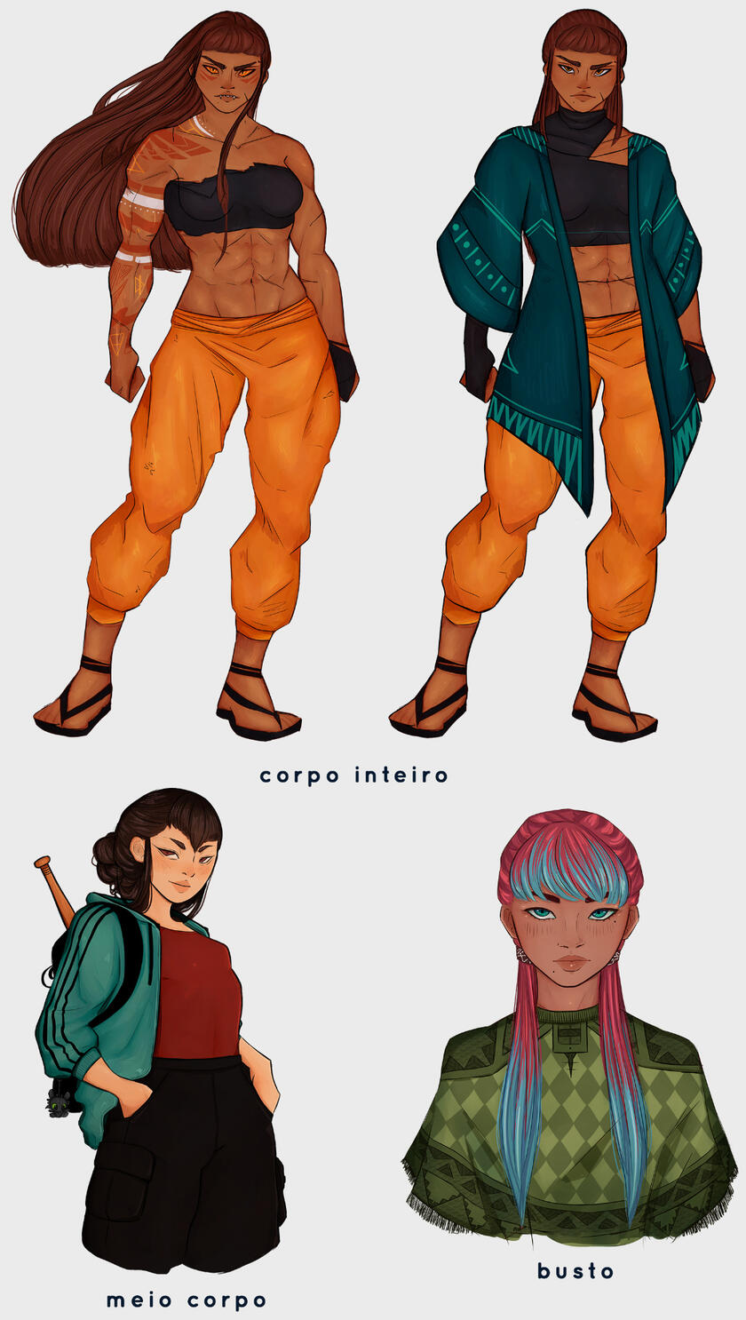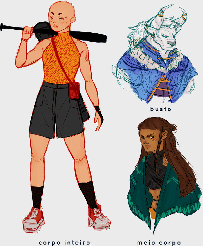 Eu farei um esboço do seu personagem. Essa é uma boa opção caso você queira ter uma ideia rápida de como o seu personagem seria no meu traço.
