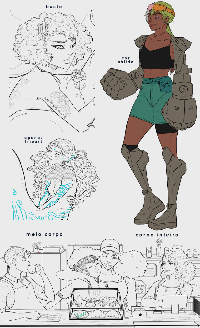 Encomenda (ou commission) trata-se do ato de pedir o serviço de um artista pela criação de uma obra feita exclusivamente para uma pessoa física. Se você é uma empresa e gostaria de fazer um pedido, entre em contato comigo por e-mail ou qualquer uma de minhas redes sociais.